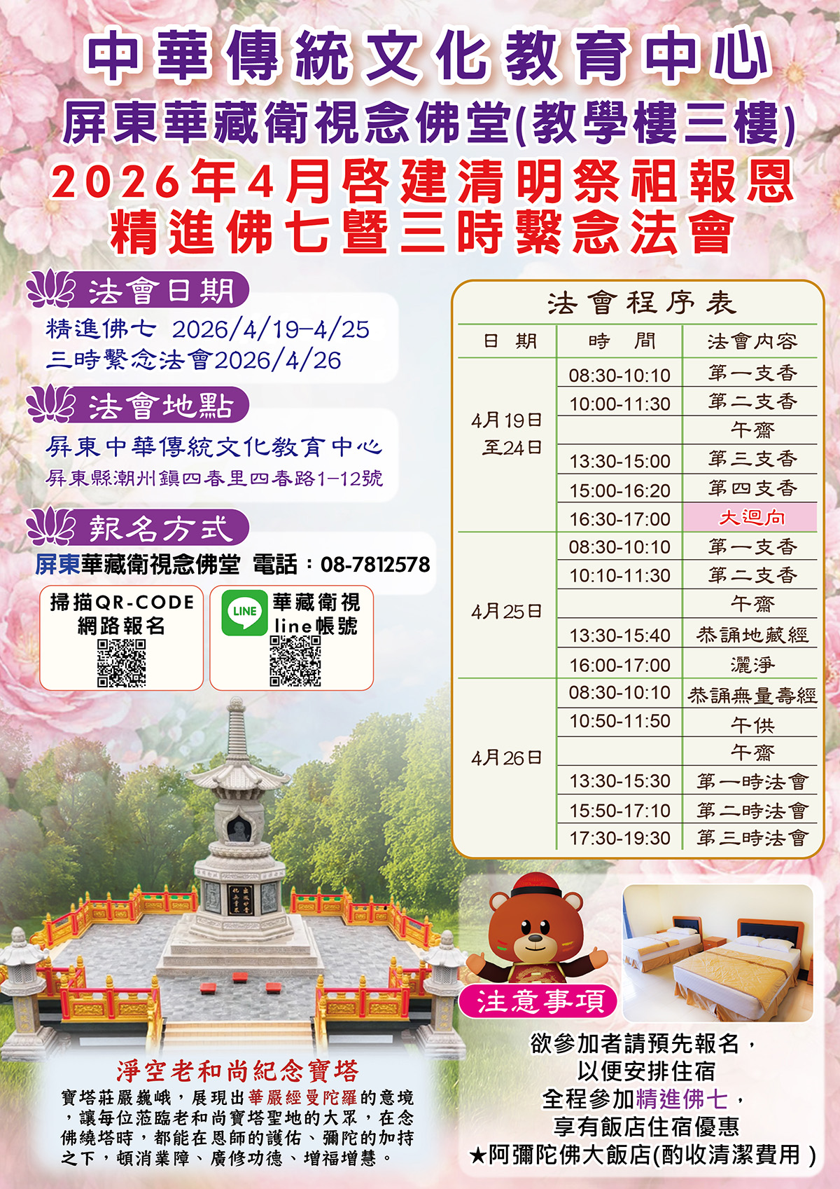 法會日期:🔸4月19日至26日 清明祭祖報恩精進佛七暨三時繫念法會