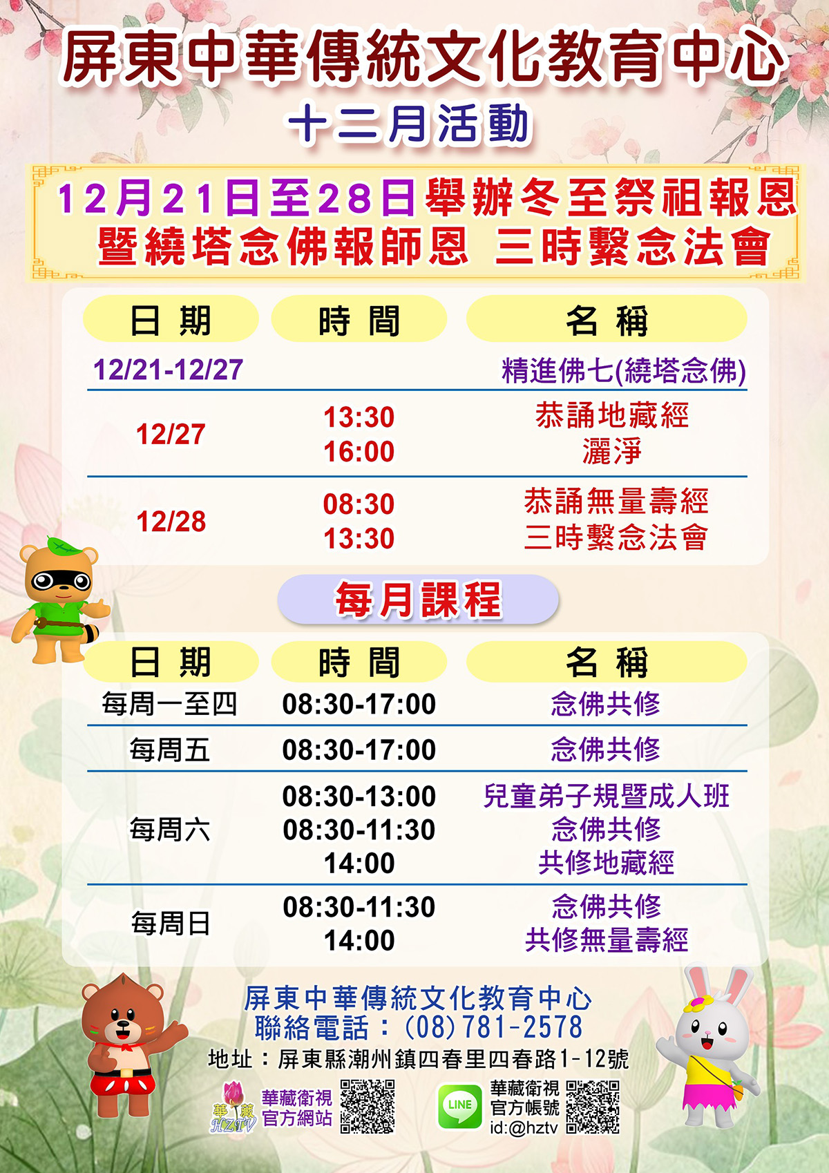 法會日期:🔸12月21~28日 冬至祭祖報恩暨繞塔念佛報師恩三時繫念法會